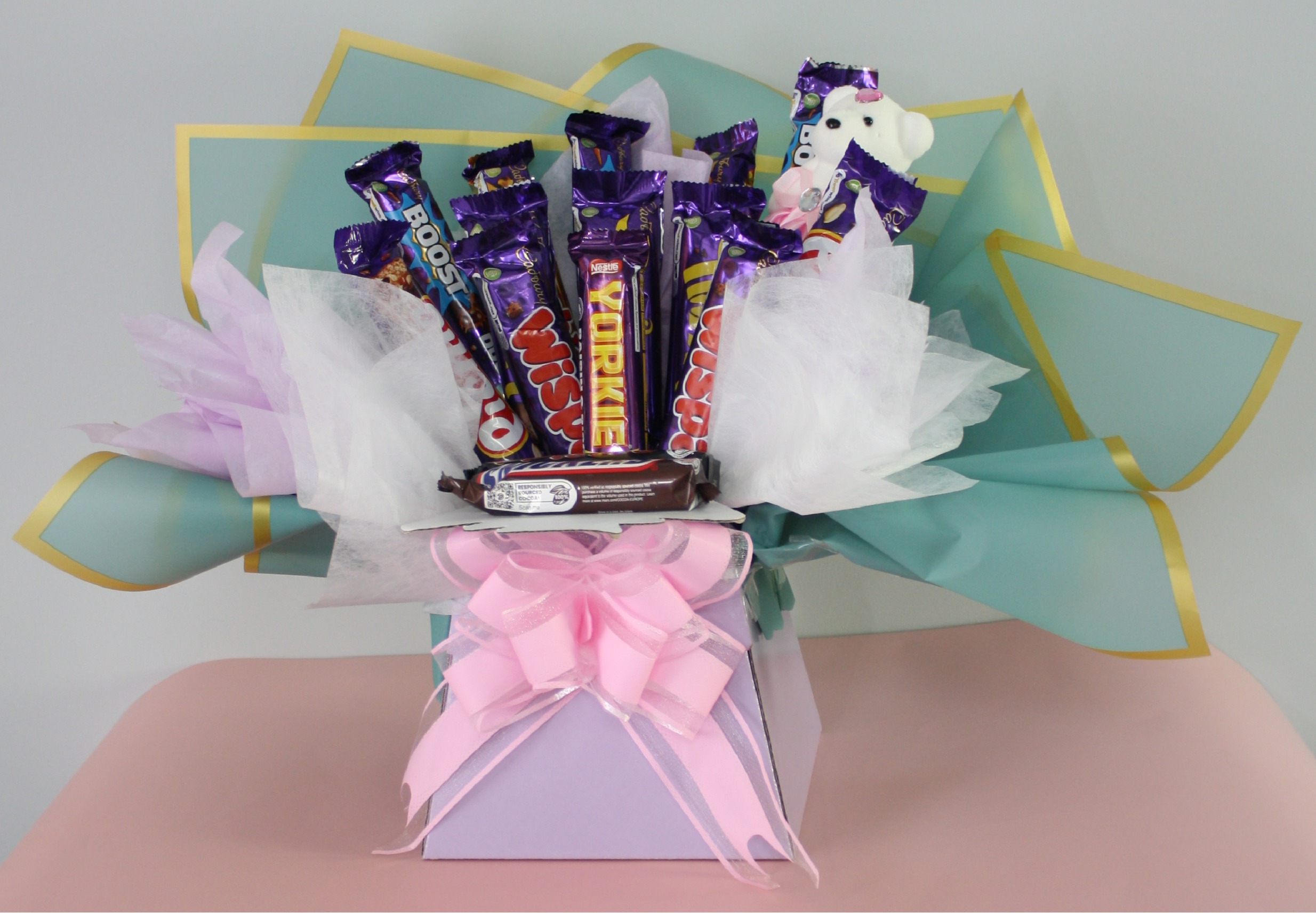 We also offer personalised ballons as an addition to your chocolate or sweet bouquets.